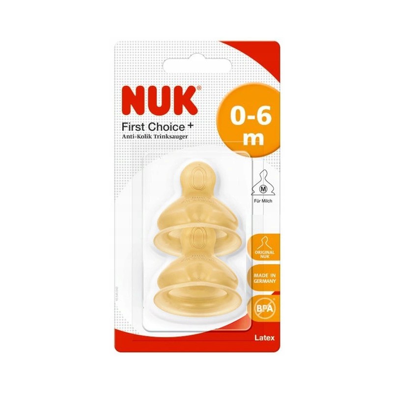 Lateksowy smoczek do butelki NUK First Choice Plus 0-6, M(do mleka modyfikowanego) 2szt