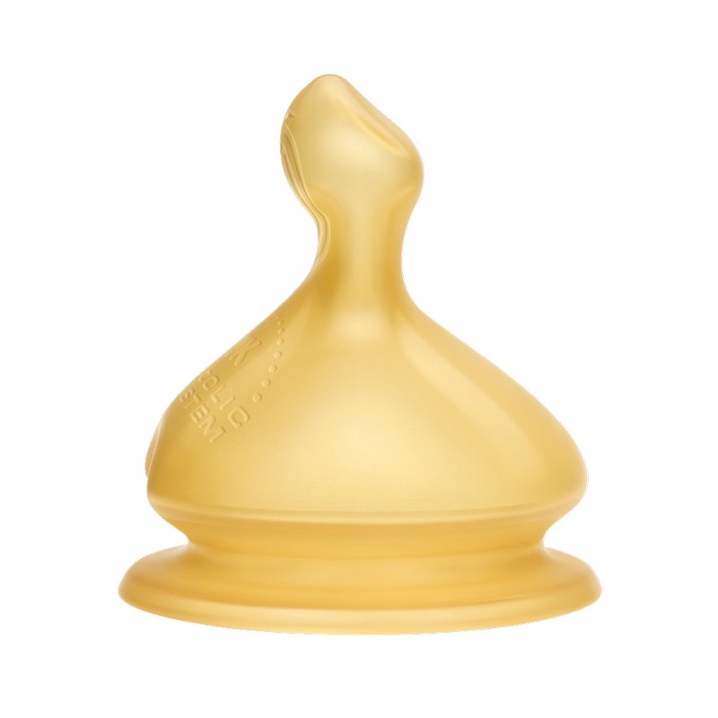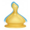 Lateksowy smoczek do butelki First Choice+ w rozmiarze M przeznaczony dla dzieci od narodzin do 6 miesiąca karmionych mlekiem modyfikowanym.