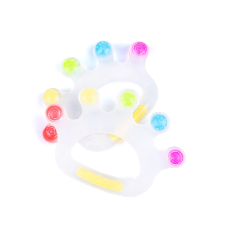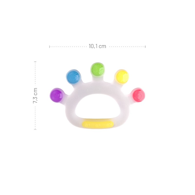 Gryzaczek KORONA, wykonany z bezpiecznego silikonu jest niezastąpiony podczas ząbkowania. Lekki, poręczny, łatwy do uchwycenia i trzymania w dziecięcych rączkach zapewni maluchowi mnóstwo zabawy i przyniesie ulgę w trudnym czasie ząbkowania.