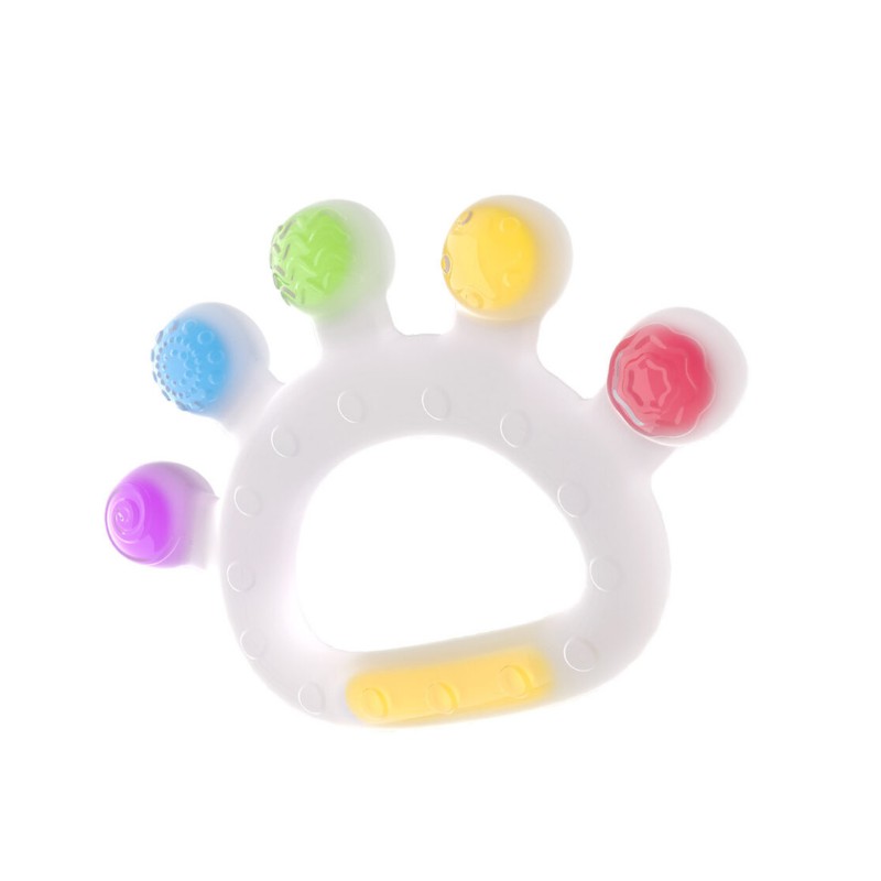 Kolorowy gryzaczek wykonany z bezpiecznego silikonu. Zdobią go wypustki o zróżnicowanym kształcie, dzięki czemu delikatnie masuje on opuchnięte dziąsełka, przynosząc maluchowi ulgę. Wygodny uchwyt jest idealnie dostosowany do małej rączki, co ułatwia chwytanie zabawki.