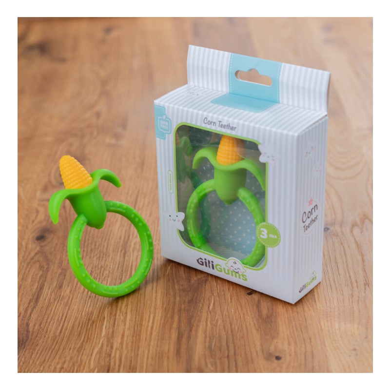 Gryzaczek KUKURYDZA, wykonany z bezpiecznego silikonu jest niezastąpiony podczas ząbkowania. Lekki, poręczny, łatwy do uchwycenia i trzymania w dziecięcych rączkach zapewni maluchowi mnóstwo zabawy i przyniesie ulgę w trudnym czasie ząbkowania.