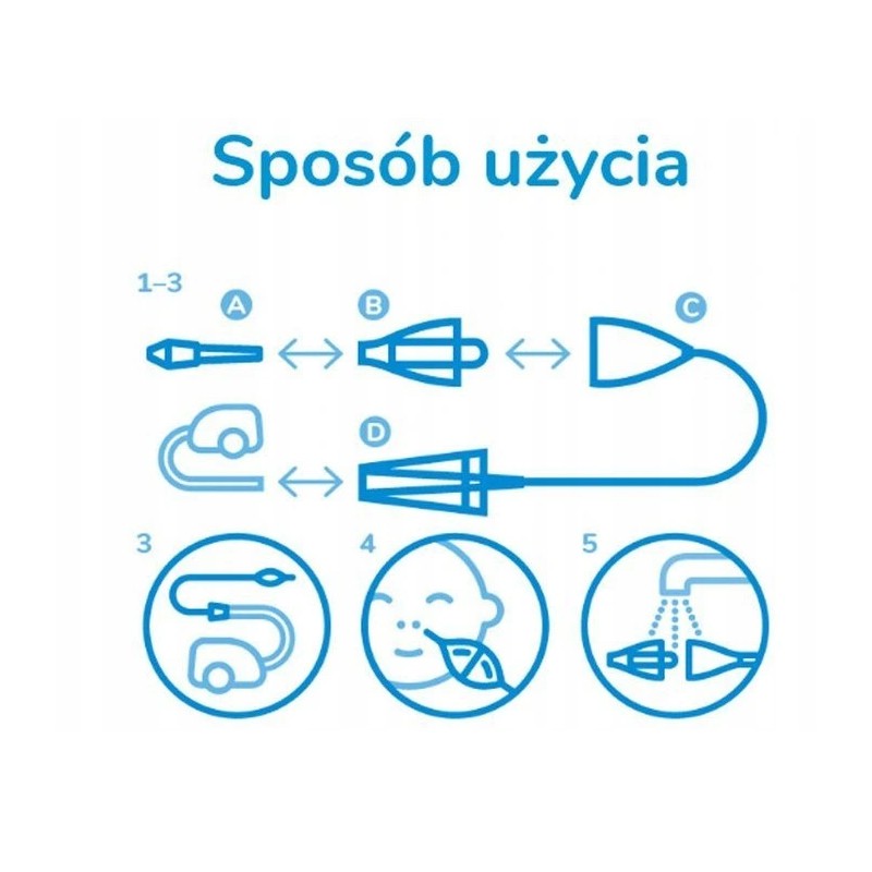 - Jest o wiele bardziej skuteczny niż ustny aspirator czy gruszki.