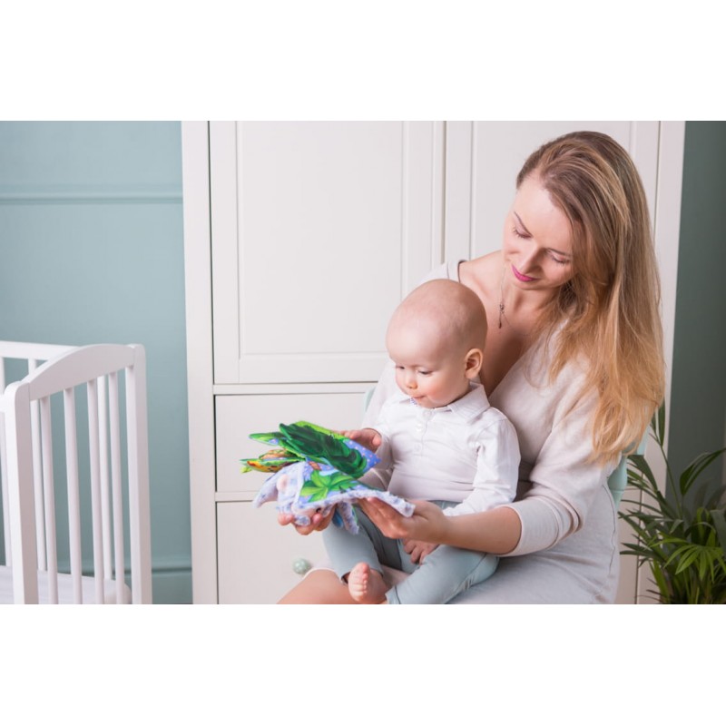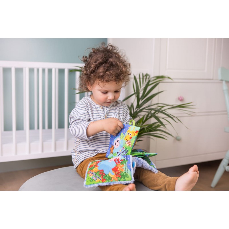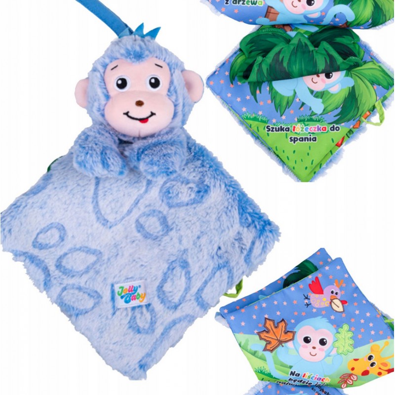 Małpeczka szuka dla siebie wygodnego miejsca do spania, wyrusz razem z nią na poszukiwanie wygodnego legowiska! Mięciutka książeczka składa się z kilku szeleszczących stron z kolorowymi obrazkami i tekstem w języku polskim. Zróżnicowane faktury materiałów rozwijają umiejętności poznawcze dziecka, a pluszowa okładka oraz ukryte w książeczce grzechotka i piszczałka, umilą zabawę.