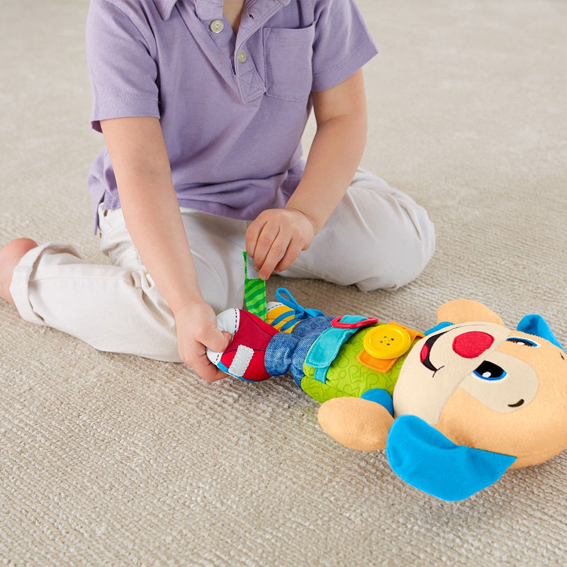 Szczeniaczek Przytulaczek- Ubieraczek, jest idealnym towarzyszem dla każdego malucha uczącego się tak ważnych rzeczy jak zawiązywanie butów czy zapinanie guzików. Dodatkowo interaktywny Piesek posiada radosne piosenki i motywujące zwroty, które uczą dziecko ubierania i przygotowywania się do rozpoczęcia dnia.