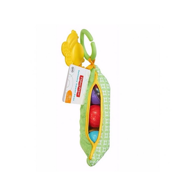 Zawieszka w kształcie zielonego groszku, zapewnia wiele atrakcji i zachęca do wspólnej zabawy. Zróżnicowane faktury zapewniają wrażenia dotykowe, szeleszczące elementy wpływają pozytywnie na rozwój słuchu a elastyczny gryzaczek przyda się podczas ząbkowania.