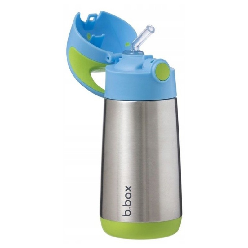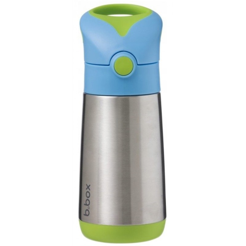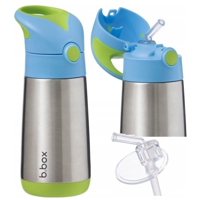 Butelka termiczna ze słomką B.BOX to idealne rozwiązanie gdy wybierasz się z dzieckiem w podróż lub na dłuższy spacer. Wykonana ze stali nierdzewnej posiada podwójne ścianki, które utrzymują temperaturę ciepłych i chłodnych napojów na kilka godzin. Wyposażona w szczelną pokrywę, uchwyt, przycisk ułatwiający otwieranie oraz elastyczną, delikatną słomkę jest znakomitym rozwiązaniem na dłuższe wyprawy.