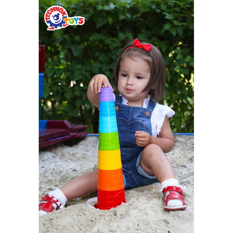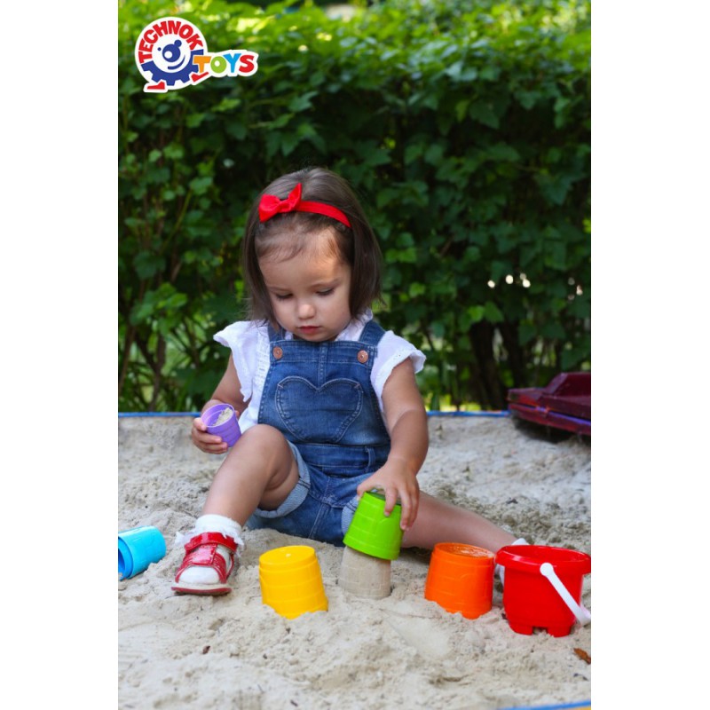 Maluch może sortować kubeczki, układać jeden na drugim, od największego do najmniejszego, tworząc w ten sposób piramidę. Podczas takiej zabawy dziecko nauczy się porządkować przedmioty według wielkości i zacznie zwracać uwagę że są różne kolory. Zabawka idealnie sprawdzi się podczas zabawy w piaskownicy.