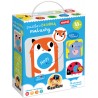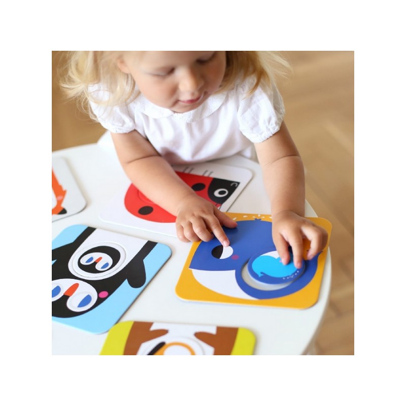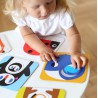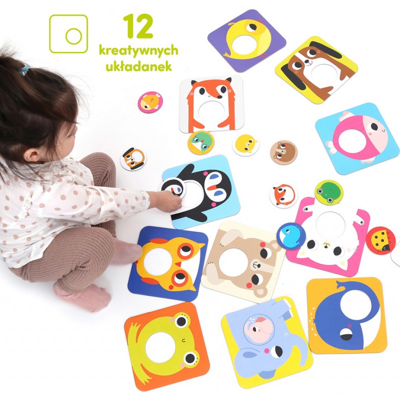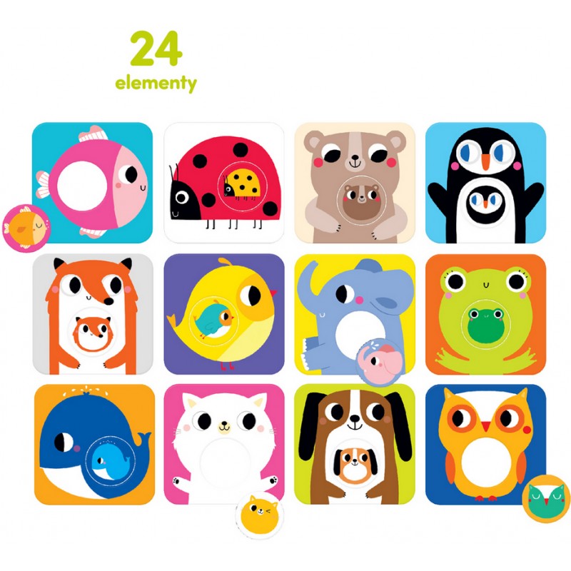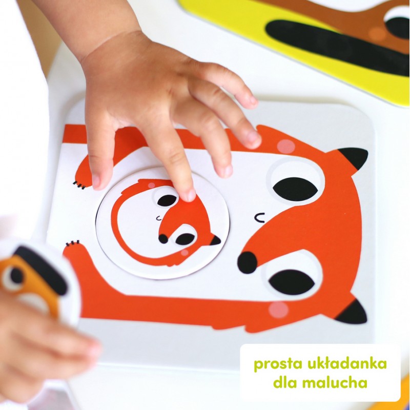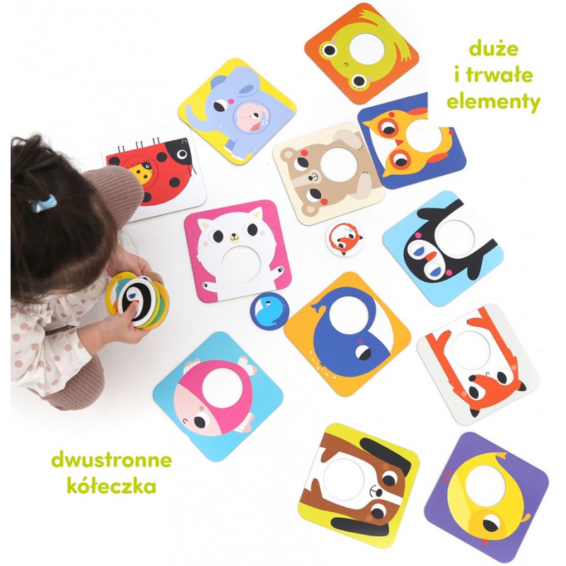 Zwierzątka z dużych dwuelementowych układanek inspirują najmłodszych do różnorodnych zabaw i pozwalają im stopniowo doskonalić różne umiejętności. Dwustronne kółeczka można dowolnie wymieniać, dlatego możliwe są zupełnie nieoczywiste połączenia.