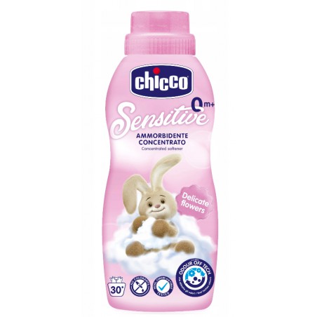 Płyn do płukania CHICCO Sensitive Delicate Flowers odświeża i zmiękcza odzież dziecięcą nie powodując podrażnień delikatnej skóry dziecka. Przebadany dermatologicznie, hipoalergiczny płyn sprawia, że dziecięce ubranka są miękkie w dotyku i delikatnie pachnące.