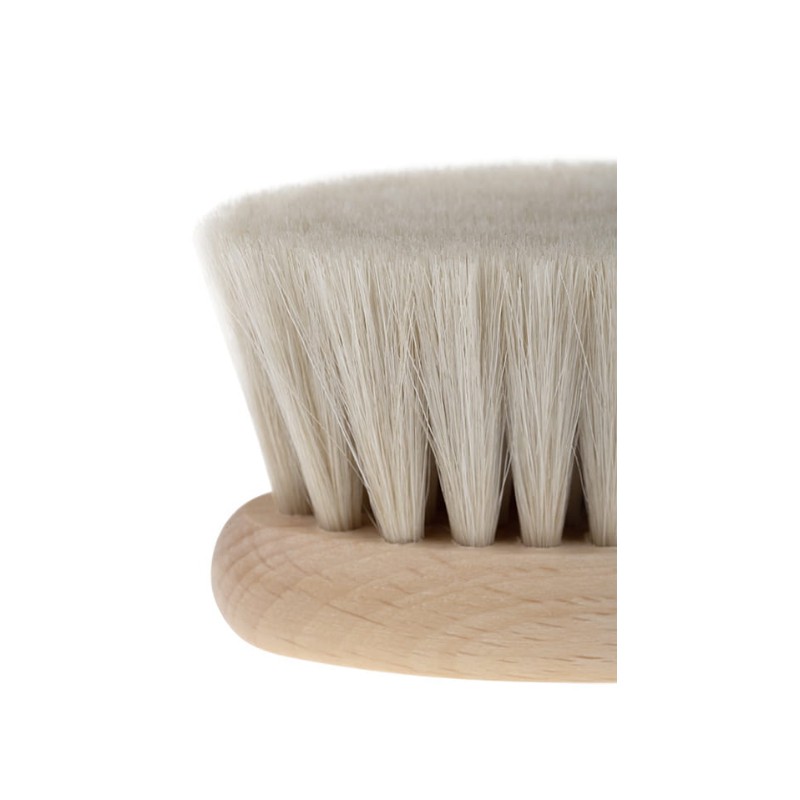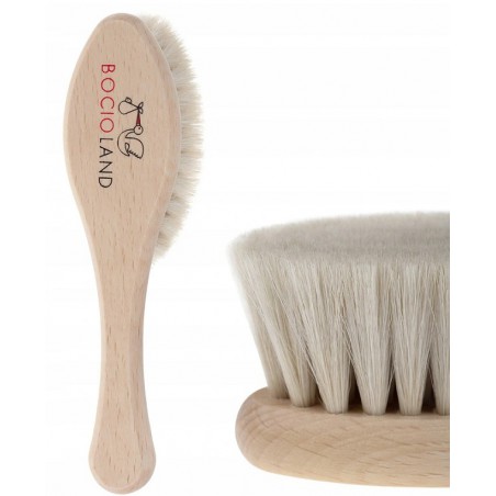 Pierwsza szczotka do włosów przeznaczona dla najmłodszych dzieci. Wykonana z naturalnego koziego włosia, nie elektryzuje delikatnych włosów. Delikatnie wymasuje główkę malucha. Ma zaokrąglone, bezpieczne dla dziecka kształty.