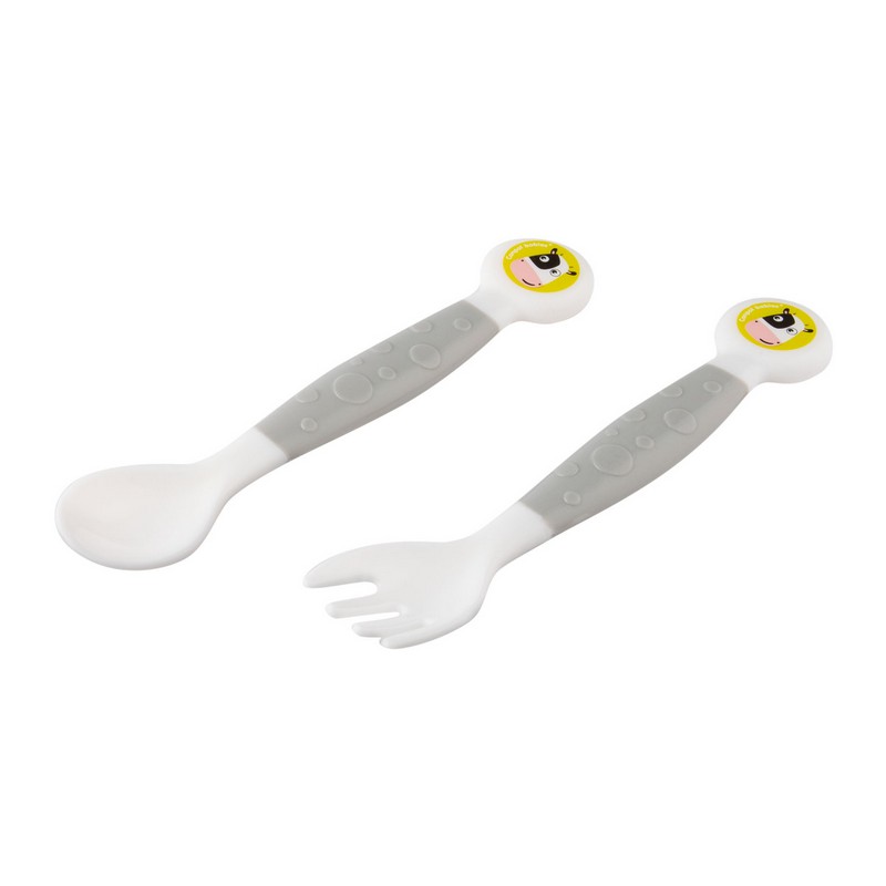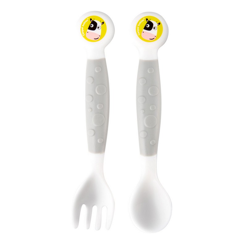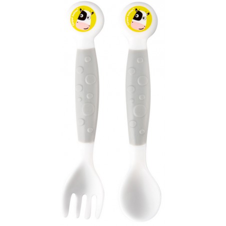 Zestaw sztućców z wizerunkiem krówki, aby karmienie maluszka było interesujące, pełne przygód smakowych oraz motywujące do samodzielnego spożywania posiłków. Specjalnie zaokrąglone krawędzie nie będą podrażniać delikatnych dziąsełek, po zgięciu utrzymają nadany im kształt, można je dostosować do potrzeb małego smakosza niezależnie od tego czy jest prawo lub leworęczne. Kolorowy widelec z łyżeczką umilą posiłek, nauczą brzdąca większej samodzielności oraz pozwolą odkrywać kulinarne krainy smaków dotąd nieznane.