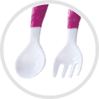 - kształt łyżeczki i widelca dopasowany jest do jamy ustnej dziecka