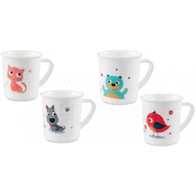 Klasyczny kubeczek plastikowy do picia dla nieco starszego i samodzielnego malucha. Ozdobiony kolorowymi zwierzakami z pewnością zainteresuje i zachęci do samodzielnego picia oraz urozmaici posiłek niezależnie od pory dnia. Każde dziecko będzie uradowane, ponieważ sok, herbatka czy woda będą smakowały o wiele lepiej, bo z własnego kubeczka.
