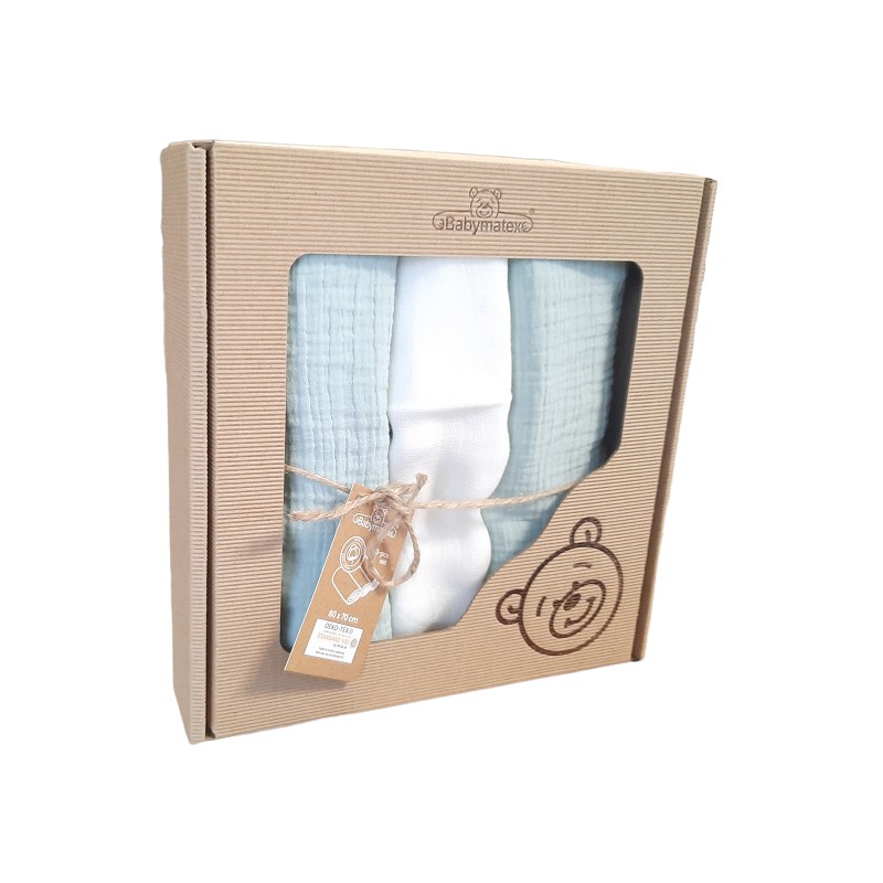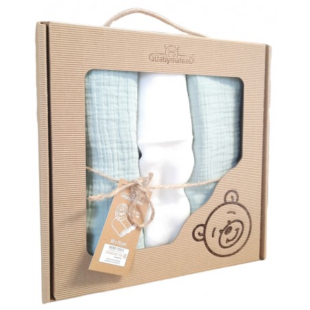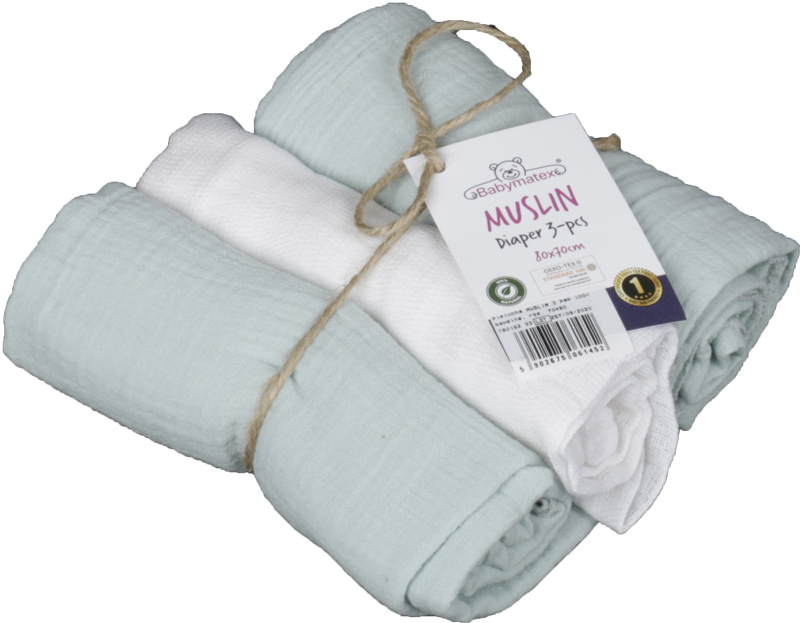 BABYMATEX Pieluszki Muślinowe Miętowy i Biały 3szt 70x80