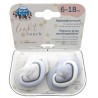 Rekomendowany przez specjalistów jako pierwszy smoczek Twojego Maluszka.* Smoczki Light touch stworzono by zapewnić maksymalny komfort najmłodszym dzieciom. Ich wyjątkowo miękka silikonowa gumka wymaga mniej wysiłku podczas ssania, a lekka, profilowana tarczka nie obciąża zgryzu i gwarantuje swobodne oddychanie, co według specjalistów ma istotny wpływ na prawidłowy rozwój jamy ustnej dziecka.** Wygodny uchwyt smoczka pozwala na przymocowanie łańcuszka i ułatwia podanie go dziecku. Smoczki Light touch z łatwością utrzymasz w czystości, dzięki nowoczesnemu etui, które może służyć do przechowywania, ale też do szybkiej i wygodnej dezynfekcji w kuchence mikrofalowej. Wystarczy odrobina wody i 2 minuty by zapewnić smoczkom higieniczną czystość. Smoczki Light touch dostępne są w kilku wyjątkowych, inspirowanych najnowszymi trendami kolekcjach i różnych rozmiarach – rosną razem z Twoim Maluszkiem.