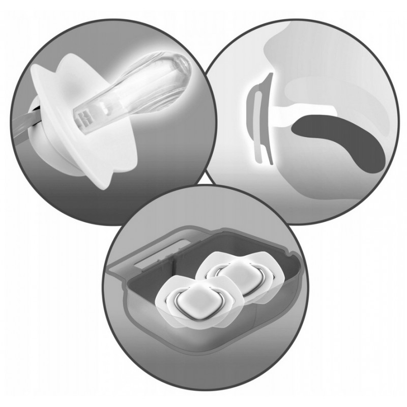 Nowoczesne etui do szybkiej i wygodnej sterylizacji w kuchence mikrofalowej - wystarczą 2 minuty i odrobina wody, by zapewnić smoczkom higieniczną czystość.