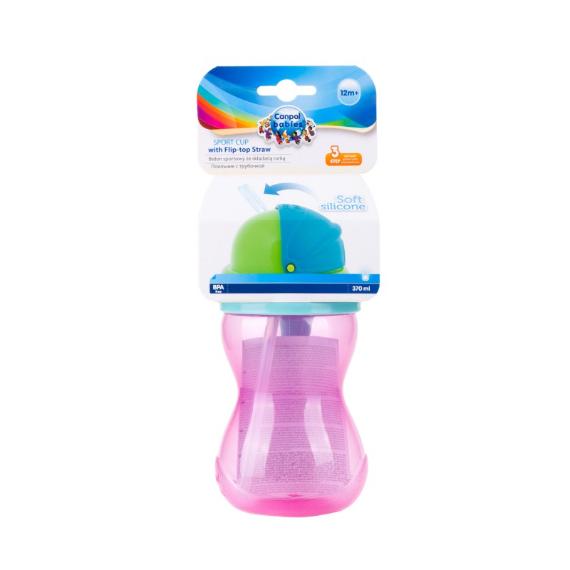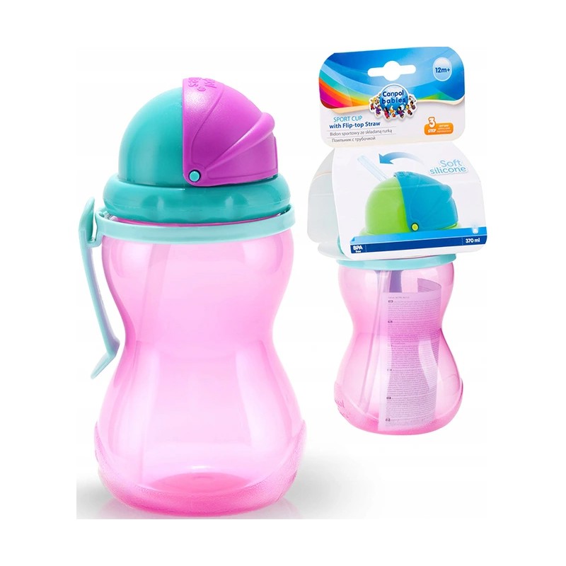 Canpol bidon ze składaną rurką silikonową 370ml różowy