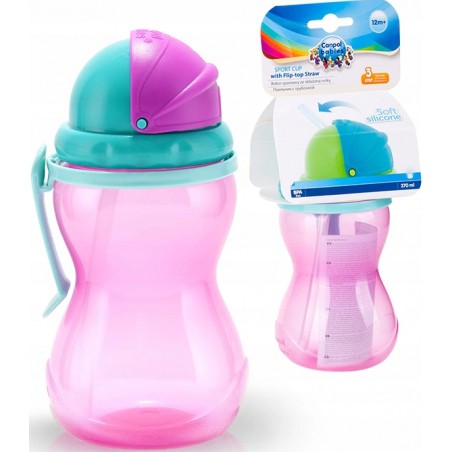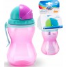 Praktyczny, kolorowy bidon dla dzieci, które opanowały umiejętność samodzielnego picia. Wyposażony w składaną, silikonową rurkę. Ruchoma część nakrętki pozwala w łatwy i wygodny sposób schować rurkę, zapobiegając niekontrolowanemu wylaniu się napoju. Wyprofilowany kształt ułatwia utrzymanie bidonu w małych, dziecięcych rączkach. Bidon wykonany został z bezpiecznego tworzywa bez BPA. Pojemność 370ml. Przeznaczony dla dzieci powyżej 12. miesiąca życia.