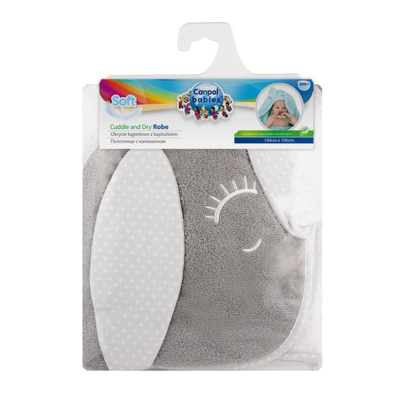 CANPOL Okrycie Kąpielowe Dla Niemowląt KRÓLIK 100x100 Szary 26/803