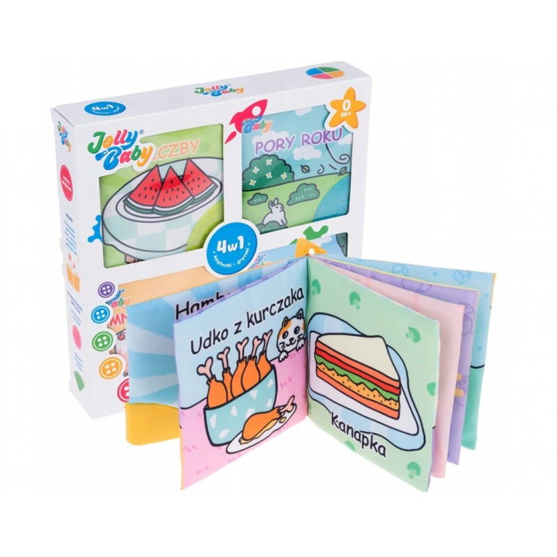 ZESTAW Książeczki Sensoryczne Gryzaki 4w1 JOLLY BABY