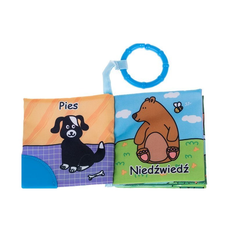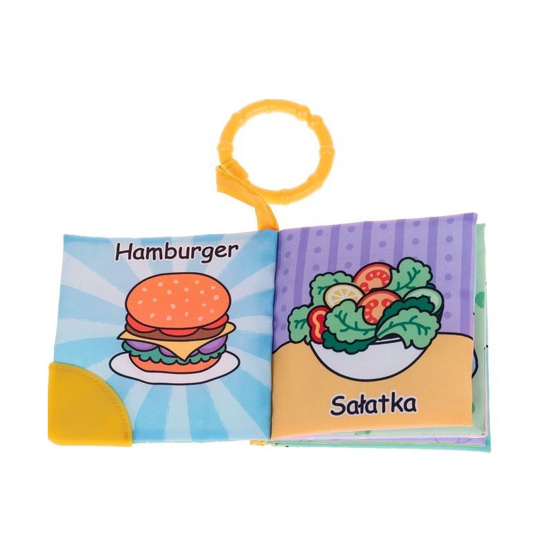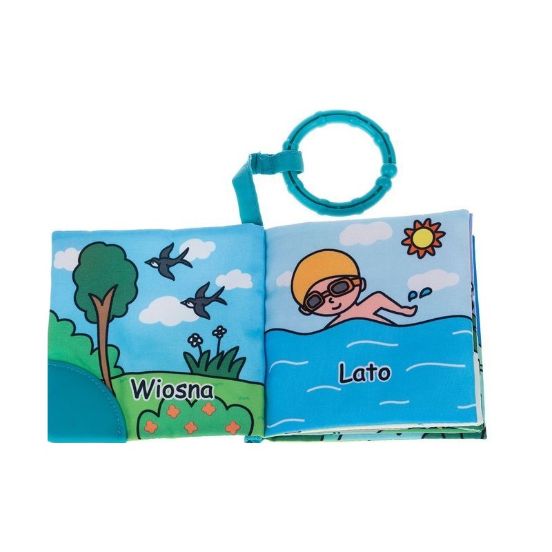 - w zestawie 4 książeczki (mniam mniam, liczby, zwierzęta i pory roku), każda wyposażona w kółeczko do zawieszania w wybranym miejscu oraz gryzak na okładce