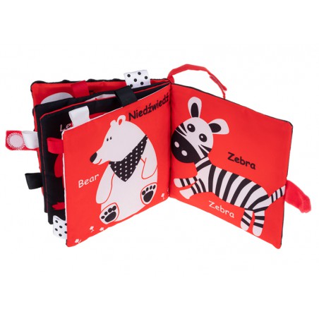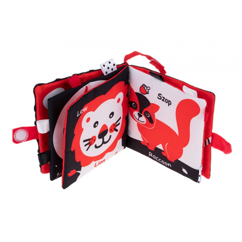 Ta niepozorna książeczka stymuluje zmysły najmłodszych, za sprawą kontrastowych kolorów, zróżnicowanych materiałów, z których została wykonana, oraz szeleszczącej okładki z bezpiecznym lusterkiem.