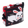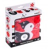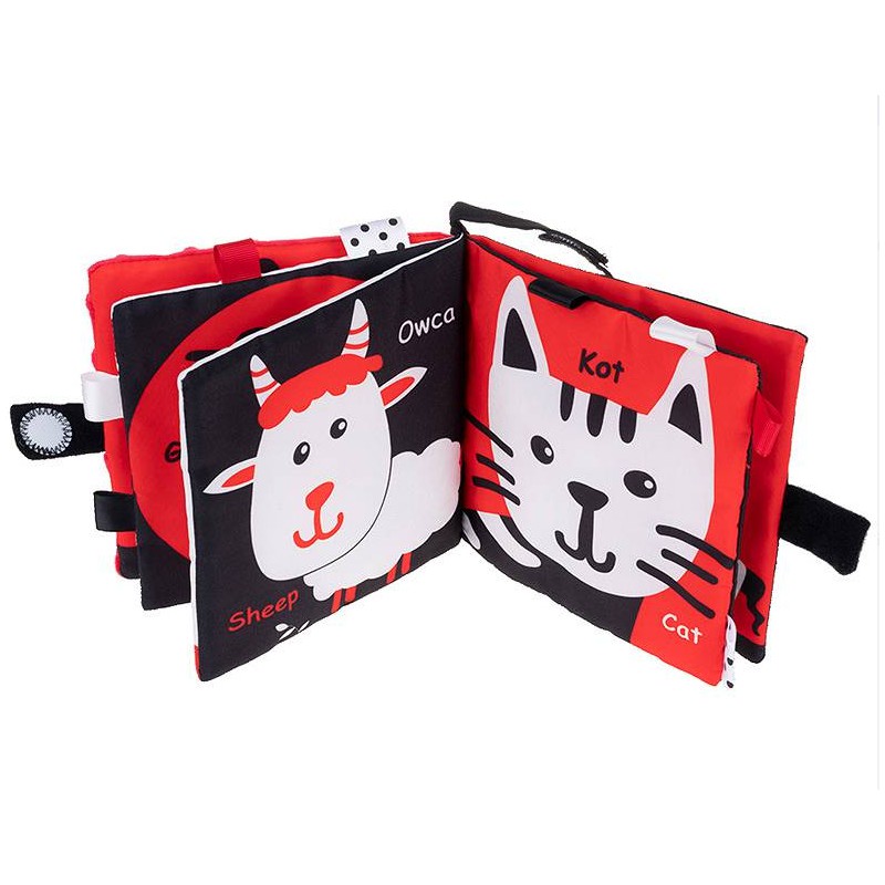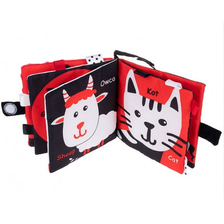 Ta materiałowa książeczka przybliży maluchom wiejskie zwierzątka, ucząc ich nazw. Na dziesięciu sensorycznych stronach znajdziemy podobiznę zwierzaka wraz z jego nazwą w języku polskim oraz angielskim. Okładka książeczki szeleści, co uatrakcyjnia zabawę i stymuluje zmysły malucha, a bezpieczne lusterko, w które została wyposażona, posłuży do samopoznania dziecka. Praktyczna zawieszka na rzep ułatwi zaczepianie książeczki w dowolnym miejscu.