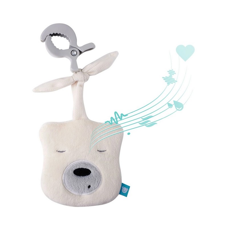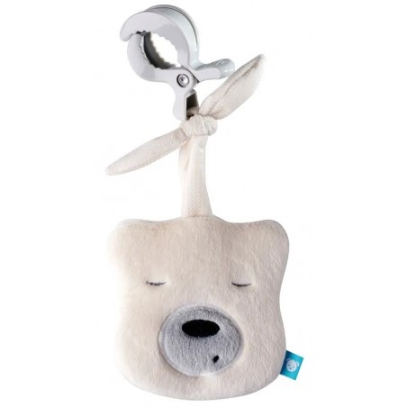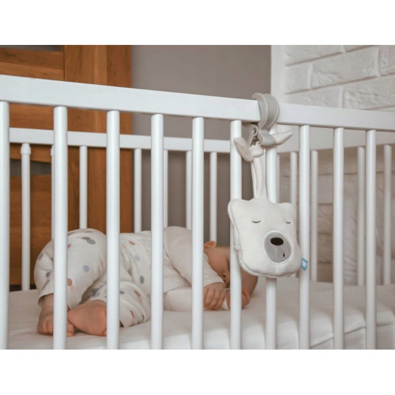 Mini – szumi jak duży miś, a dzięki funkcjonalnej klamrze, idealnie nadaje się do powieszenia na dziecięcym łóżeczku, wózku, foteliku samochodowym czy nosidełku.