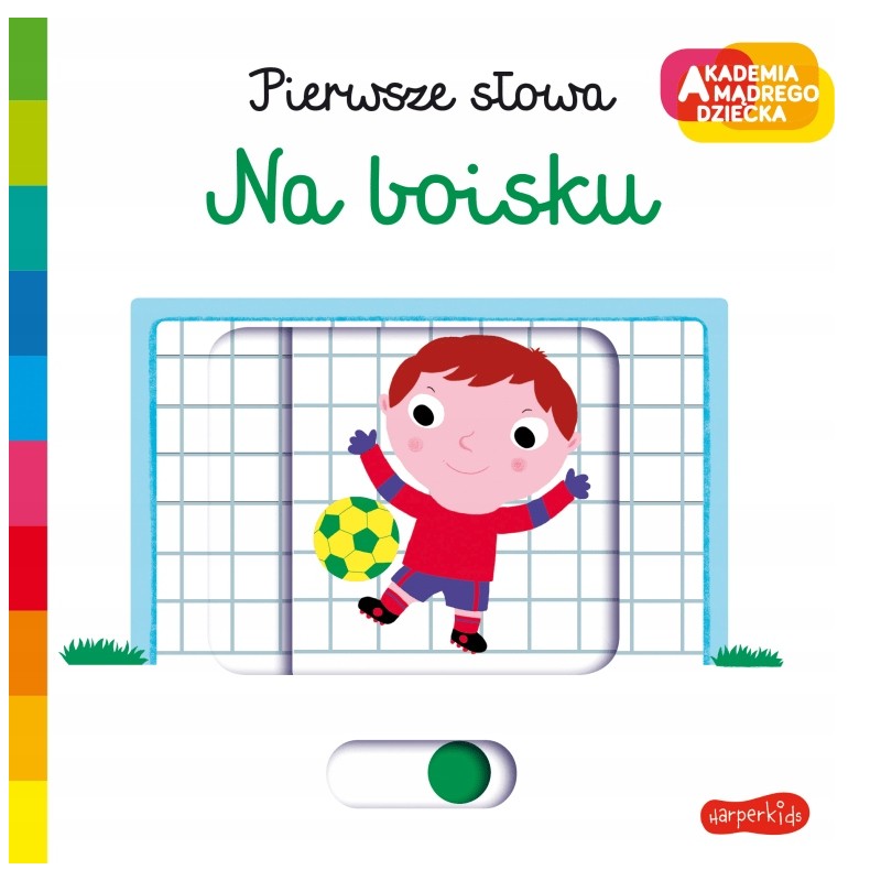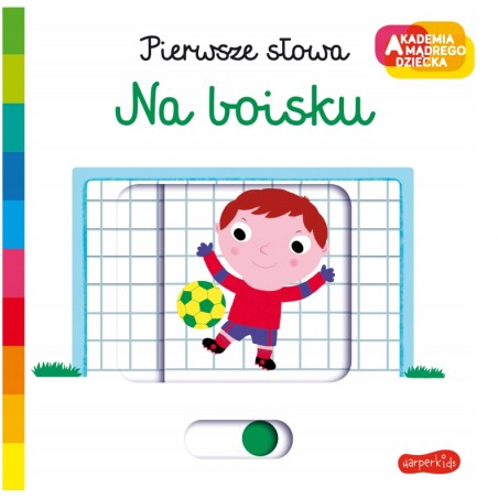Jak nazywa się osoba kopiąca piłkę? Z czego składa się strój piłkarza? Co znajduje się na boisku? Odpowiedź kryje się w kartonowej książce z przesuwanymi obrazkami.