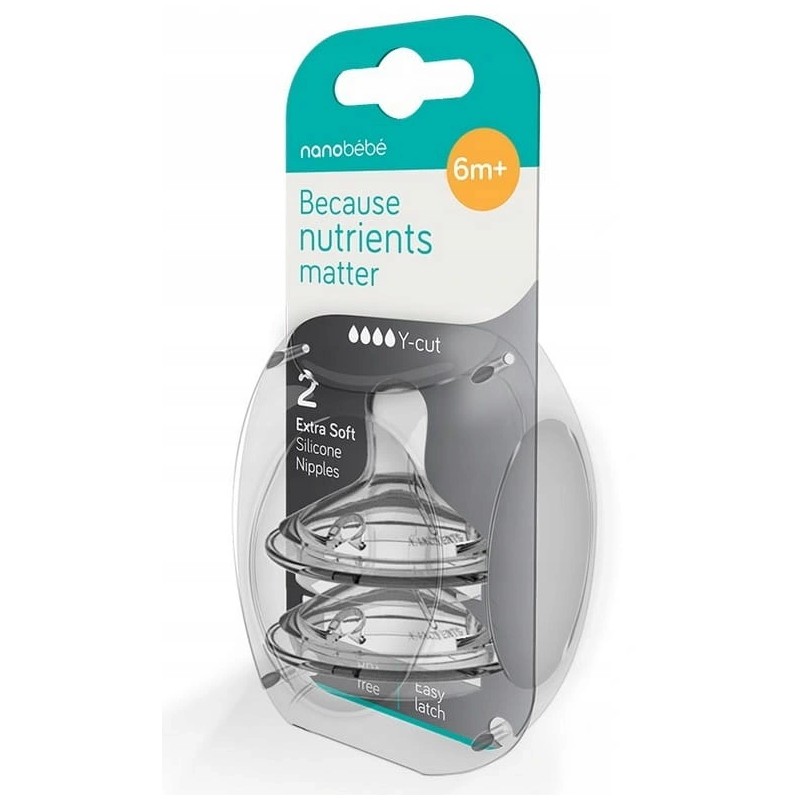 NANOBEBE Smoczek Silikonowy do Butelki Szybki Y 2szt
