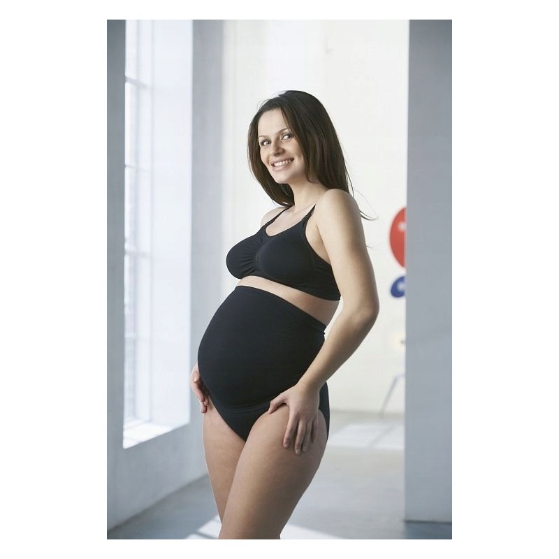 Bezszwowy, podtrzymujący pas ciążowy, zapewnia komfort i ulgę w obszarze wrażliwych części ciała, takich jak podbrzusze i dolna część pleców. Zastosowana technologia splotu oraz oddychający materiał sprawiają, że wyjątkowo elastyczna tkanina rozciąga się na brzuchu w miarę postępu ciąży, zapewniając podparcie potrzebne przed porodem oraz po nim.