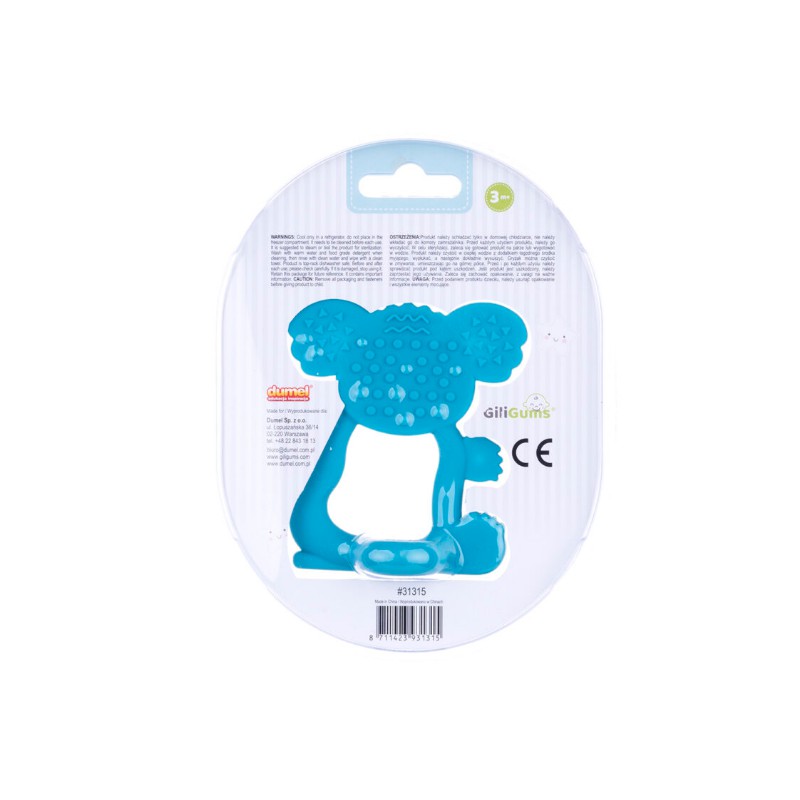 Gryzaczek KOALA, wykonany z bezpiecznego silikonu jest niezastąpiony podczas ząbkowania. Lekki, poręczny, łatwy do uchwycenia i trzymania w dziecięcych rączkach zapewni maluchowi mnóstwo zabawy i przyniesie ulgę w trudnym czasie ząbkowania.