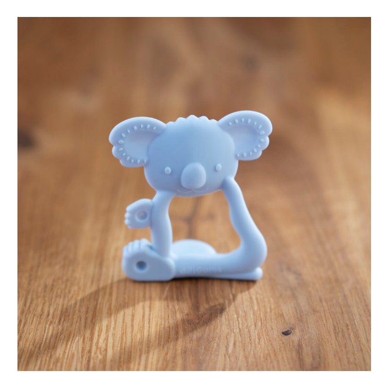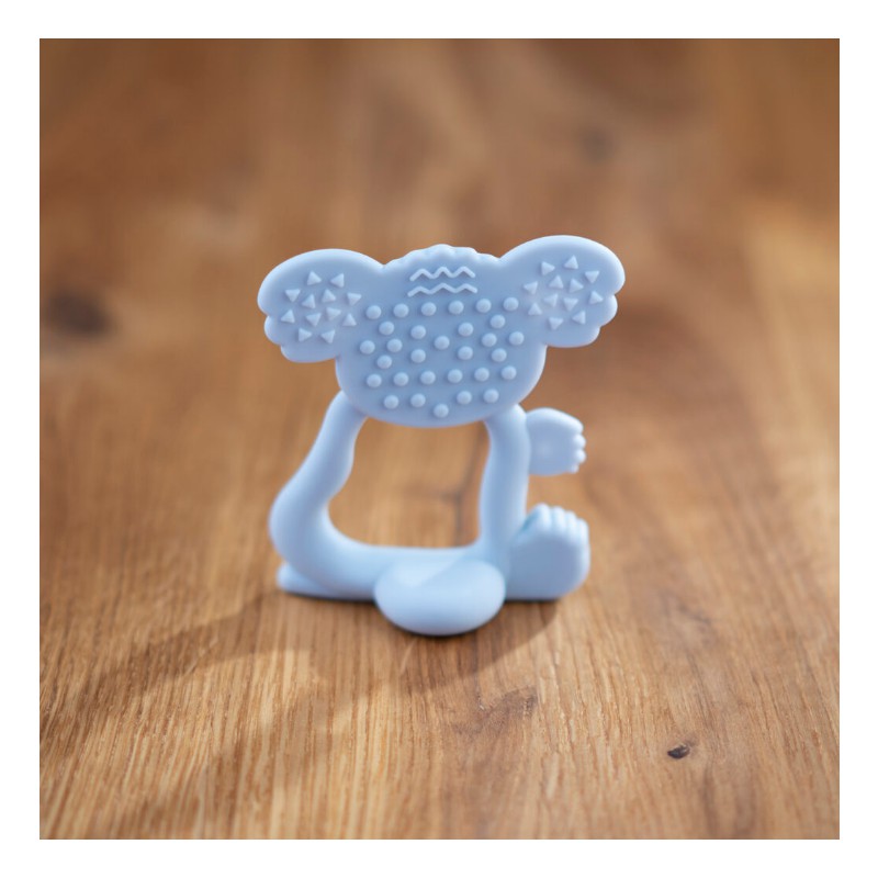 Uroczy, silikonowy koala posiada otwór w brzuszku, co ułatwia małym rączkom chwytanie gryzaka. Zdobią go wypustki o zróżnicowanym fakturach, które delikatnie masują dziąsła dziecka, przynosząc ulgę w ząbkowaniu.