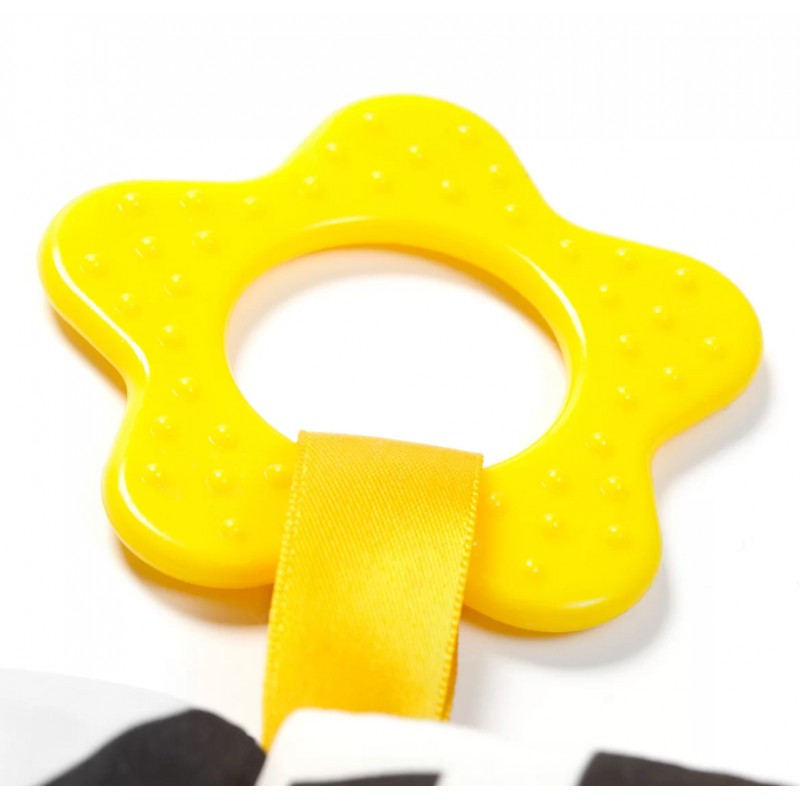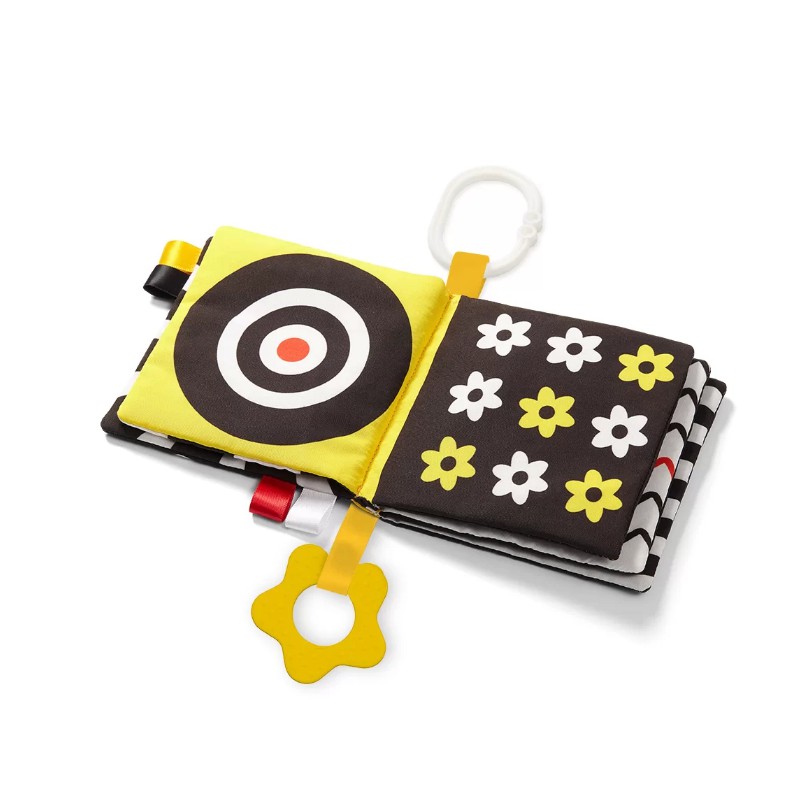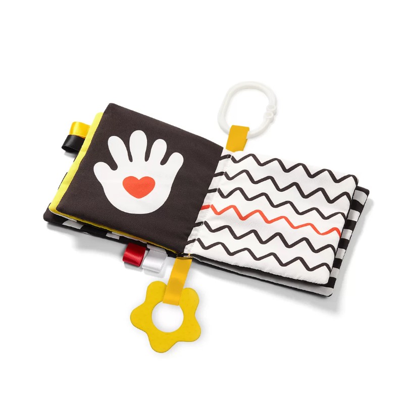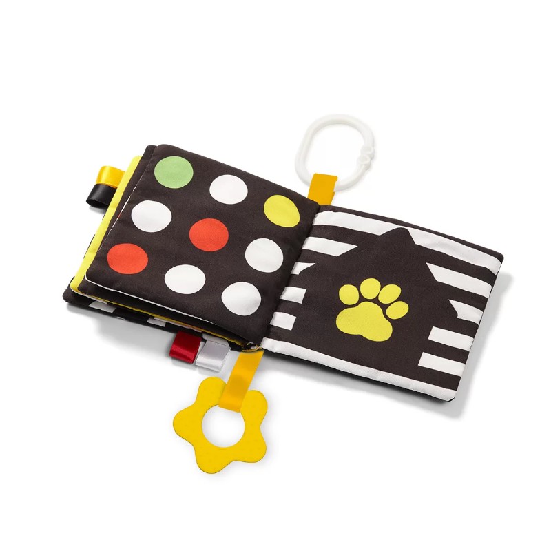 Książeczka umożliwia nabywanie nowych umiejętności od ćwiczenia uchwytu, poprzez stymulację pracy dziąseł za pomocą gryzaków z wypustkami, aż do odbierania ciekawych wrażeń wzrokowych, słuchowych i studiowania różnych faktur materiałowych. Wmontowane lusterko pozwala na odkrywanie najbliższego otoczenia z różnych perspektyw. Utrzymana jest w wyraźnych, kontrastujących barwach, które rozwijają zmysł wzroku, wyobraźnię i umiejętność koncentracji. Będzie towarzyszyć dziecku w pierwszych etapach rozwoju, odpowiadając na coraz to nowe potrzeby poznawcze.