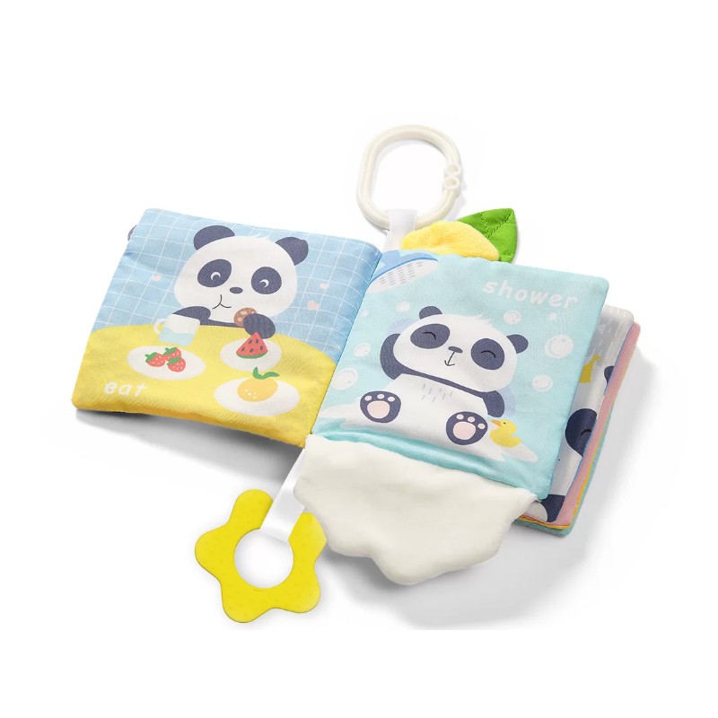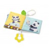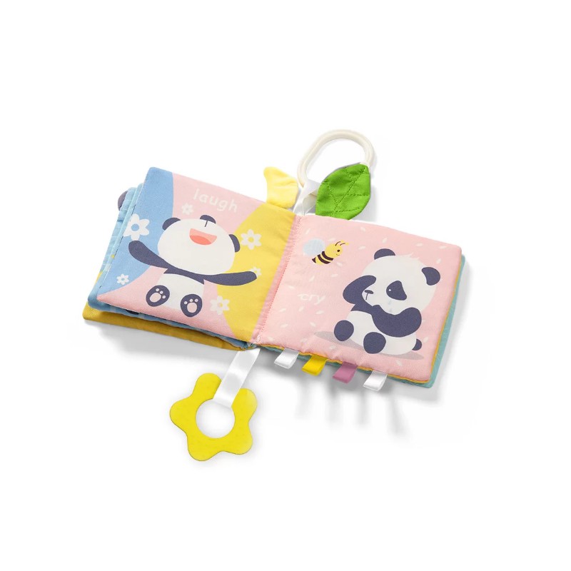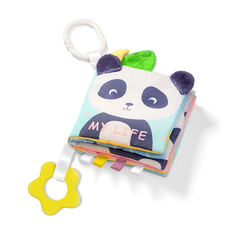 Książeczka umożliwia nabywanie nowych umiejętności od ćwiczenia uchwytu, poprzez stymulację pracy dziąseł za pomocą gryzaków z wypustkami, aż do odbierania ciekawych wrażeń słuchowych i studiowania różnych faktur materiałowych.Utrzymana jest w spokojnych pastelowych barwach, które koją i relaksują. Będzie towarzyszyć dziecku w pierwszych etapach rozwoju, odpowiadając na coraz to nowe potrzeby poznawcze.