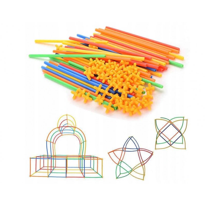Zestaw klocków w kształcie kolorowych słomek wykonanych z plastiku, które świetnie pobudzają wyobraźnię i kreatywność dziecka. Klocki są bezpieczne, elastyczne można je wyginać i bez problemu tworzyć swoje super budowle. Można z nich tworzyć najróżniejsze wzory, kształty i formy, jedynym ograniczeniem jest wyobraźnia i ilość słomek.