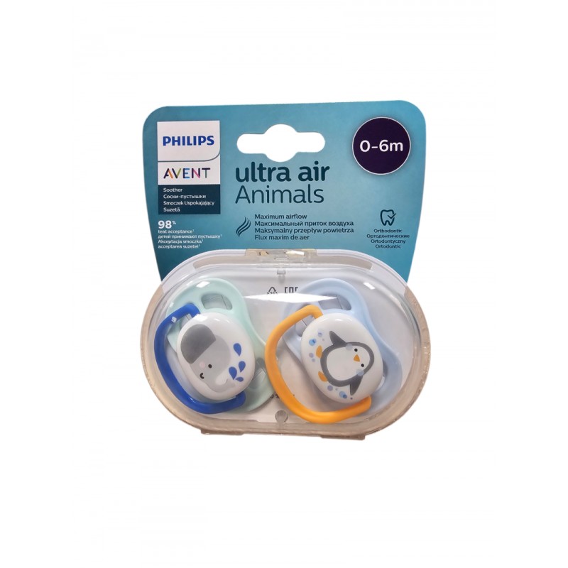 Smoczki z serii Ultra Air od firmy Avent to smoczki przeznaczone dla wrażliwej i skłonnej do podrażnień skóry dzieci. Wyposażone zostały w 4 otwory w tarczy, które zapewniają wentylację podczas ssania. Powietrze może przez nie swobodnie przepływać, dzięki czemu skóra małych pociech pozostaje sucha i miękka na długo. Zaokrąglone brzegi i lekka konstrukcja smoczka zapewniają maksymalny komfort użytkowania.