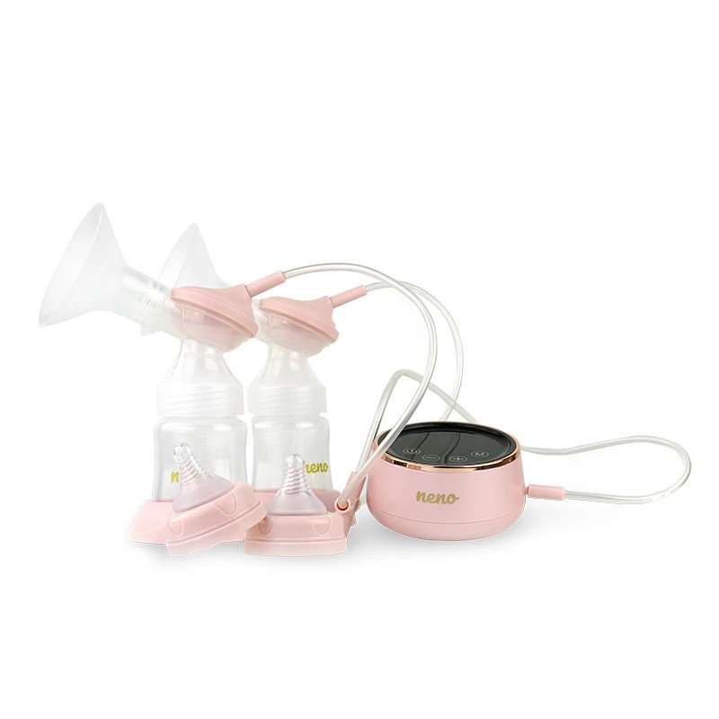 Pojedynczy laktator Neno Bella został doceniony przez Mamy za funkcjonalność i wygląd. Dlatego jego podwójną wersję upiększyliśmy jeszcze bardziej. Stacja pompująca została pokryta specjalną pudrową farbą natryskową, która daje efekt lekkiej satyny. Jej elementy wykończeniowe oraz logo na butelkach utrzymane są w złotym odcieniu, który tak wiele Mam już polubiło.