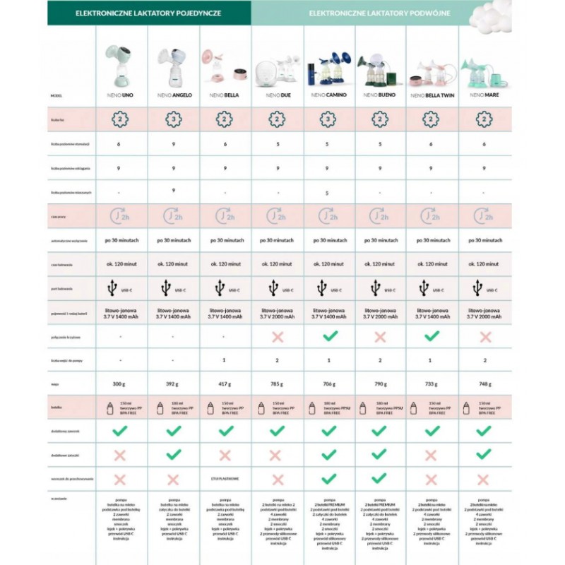 Neno Bella Twin to bezprzewodowy podwójny laktator elektroniczny, zaprojektowany z myślą o Mamach, które planują powrót do pracy lub spędzają aktywnie czas, lecz nie chcą rezygnować z karmienia piersią To najnowsza, podwójna wersja naszego bestsellera – laktatora Bella, który pokochały już tysiące Mam.