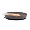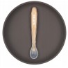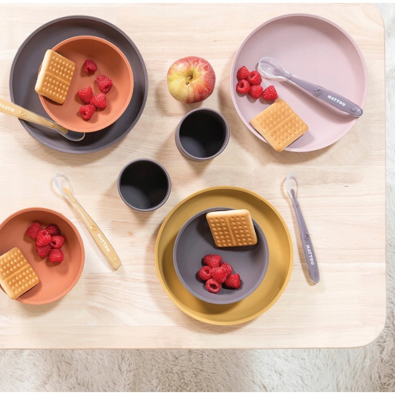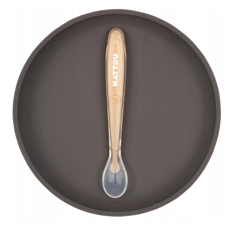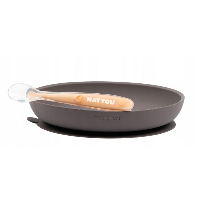 Dwuczęściowy silikonowy zestaw naczyń od Nattou wykonany z miękkiego silikonu jest bardzo praktyczny, naczynia są łatwe do trzymania i antypoślizgowe. W zestawie znajduje się talerz z przyssawką oraz łyżeczka. Zaokrąglone wewnętrzne krawędzie talerza ułatwiają dzieciom i ich rodzicom spożywanie posiłków.