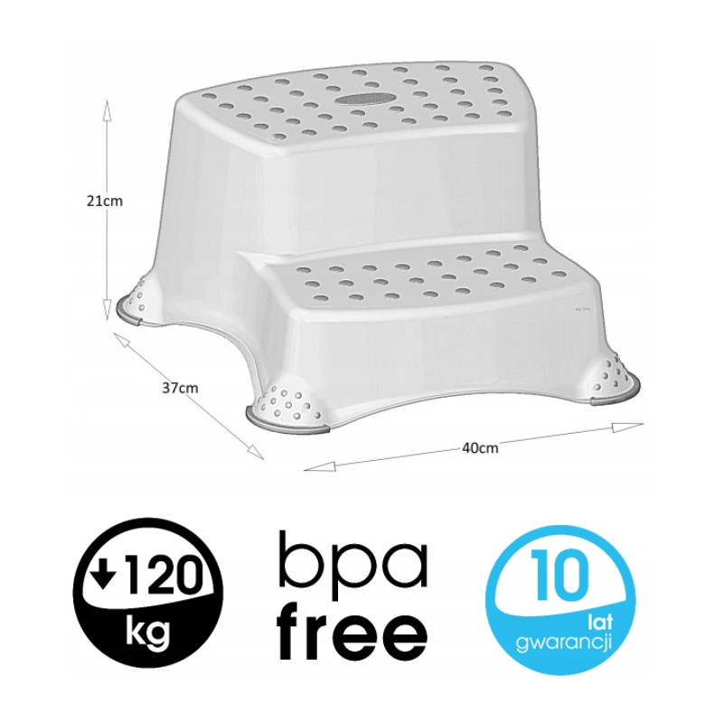 Bezkonkurencyjny, lekki i łatwy do zabrania w każdą podróż, czy wizytę u dziadków, znajomych lub przyjaciół. Podnóżek można stosować w każdej sytuacji, w której dziecko potrzebuje podwyższenia. Opatrzony w gumki antypoślizgowe zapewniające większą stabilność i przyczepność produktu do podłoża. Jego funkcjonalność oraz fantastyczny design zachwycą niejednego szkraba! Step dwustopniowy jest bardzo wygodny, a jego duża powierzchnia zapewni maluchowi większy komfort podczas użytkowania. Podest od KEEEPER wykonany jest z najwyższej jakości tworzyw, bezpiecznych dla małych dzieci. Dzięki technologii IML, za pomocą której obrazki, zamieszczane już podczas produkcji, są trwałe i nie istnieje ryzyko odklejenia i zadławienia się nimi przez malucha podczas użytkowania.