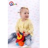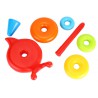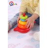 Piramidka składa się z 4 plastikowych kółek o różnych wielkościach i kolorach oraz drążka do nakładania kółek, na samej górze znajduje się stożek. Zabawa układanka sprzyja rozwojowi koordynacji ruchowo-wzrokowej oraz zdolności manualnych dziecka.