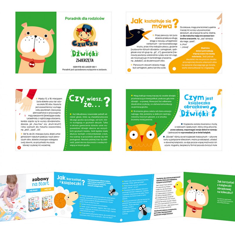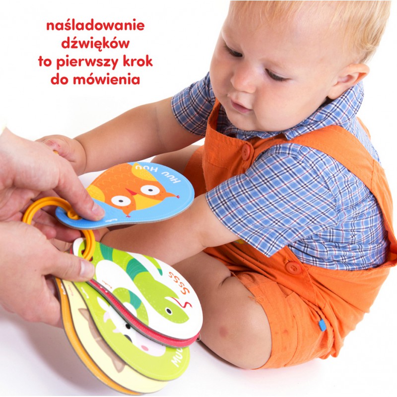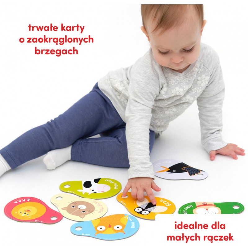 Maluch bacznie obserwuje wszystko, co dzieje się dookoła niego. Uczy się przez naśladowanie i z każdym dniem lepiej się komunikuje. Oglądajcie książeczkę i nazywajcie zwierzęta, ich części ciała i kolory. Następnie bawcie się: powtarzajcie ich odgłosy i róbcie razem śmieszne miny. Co więcej, wspólna lektura doskonale rozwija spostrzegawczość, słuch i słownictwo. To także znakomity sposób na budowanie wyjątkowej więzi z dzieckiem. W zestawie znajdziecie poradnik pełen informacji o rozwoju roczniaków i pomysłów na zabawy z książeczką.
