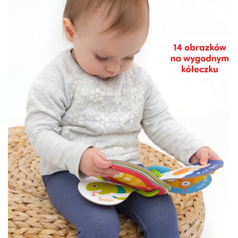 Edukacyjna pierwsza książeczka obrazkowa na kółeczku zachęca do wspólnej lektury i zabawy. Ilustracje o kolorystyce i liczbie szczegółów dopasowanej do wieku czytelników, zachęcają dzieci do oglądania, pokazywania, wydawania odgłosów i poznawania nowych słów. Wspólnie oglądajcie książeczkę – to doskonały i rozwijający sposób na spędzanie czasu. Dzięki innowacyjnej formie i poręcznemu formatowi możecie ją zawsze mieć przy sobie.