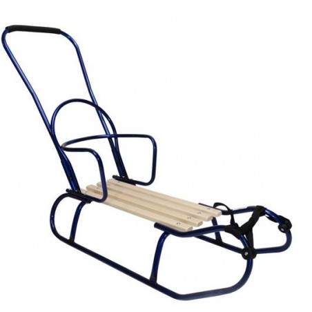 Sanki to produkt w 100% polski, wyprodukowany ze stalowej grubej rurki. Wyposażone zostały w łatwo demontowane oparcie, pchacz oraz mocny pas do ciągnięcia. Szeroko zamontowane płozy gwarantują stabilność jazdy.