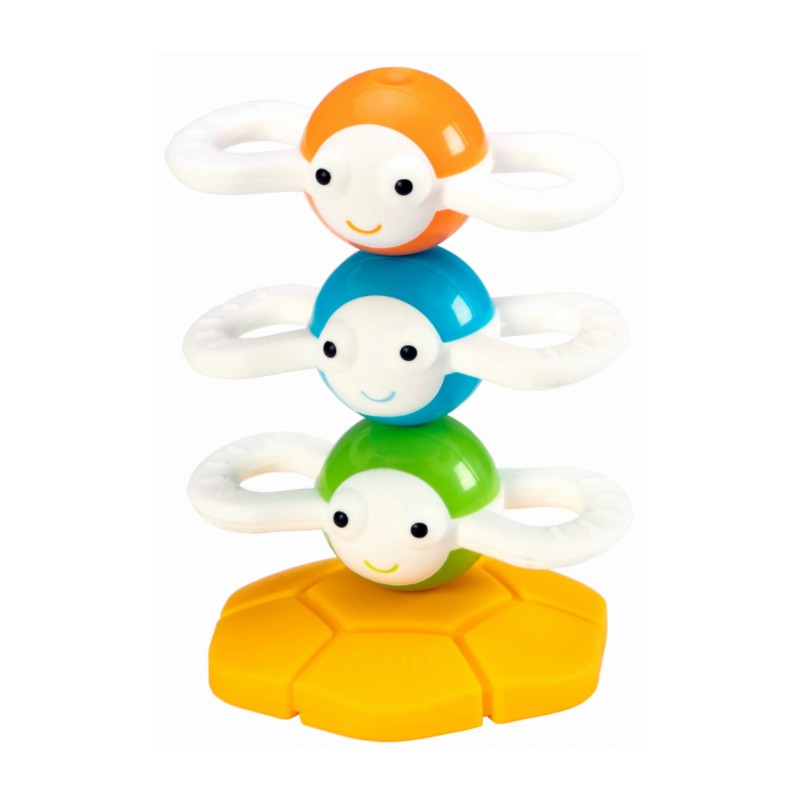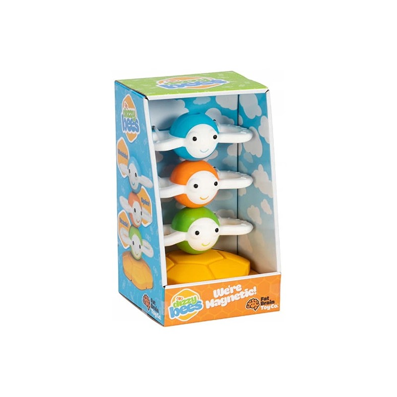 Małe rączki i młode umysły będą zachwycone uroczymi pszczółkami. Trzy pszczółki, każda to oddzielna zabawka, razem połączone magnetycznie, tworzą wieżyczkę, ustawioną na podstawce w kształcie plastra miodu. Obracaj nimi, potrząsaj, rozłącz i połącz, układaj wieżę i burz ją.