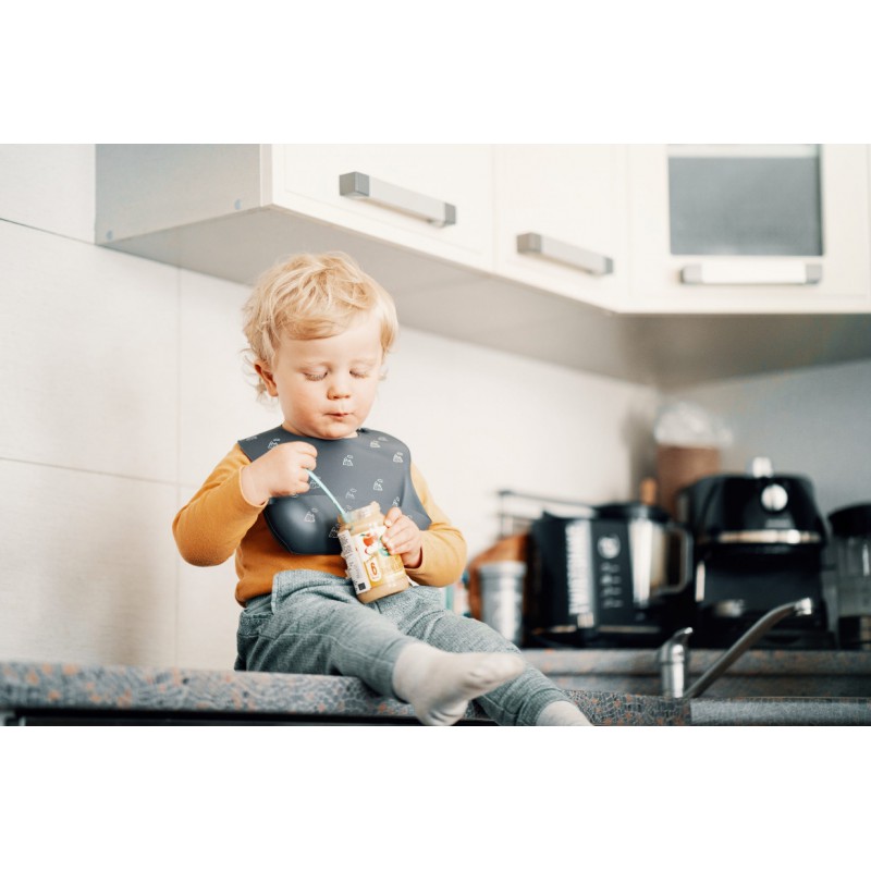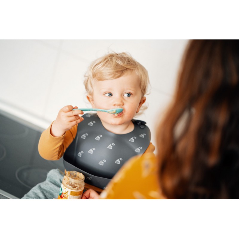 Śliniak silikonowy Sam Grey Hills jest nieocenionym pomocnikiem podczas spożywania pierwszych posiłków. Wykonany z miękkiego silikonu, z praktyczną kieszonką na resztki jedzenia i okruchy, wyposażony jest w specjalne rowki, dzięki którym kieszeń się zamyka, a odzież nie brudzi się. Bardzo lekki, miękki i praktyczny podczas karmienia maluszka, jak również podczas nauki samodzielnego jedzenia. Odpowiedni dla dzieci od 6 miesiąca życia.