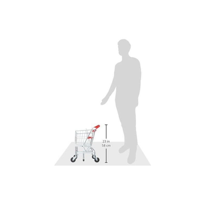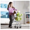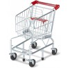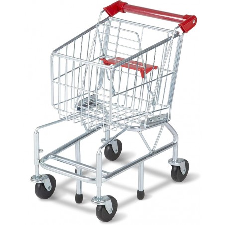 Zabawkowy wózek sklepowy marki Melissa & Doug wygląda dokładnie tak jak te, które dostępne są w sklepach i supermarketach! Solidna, metalowa konstrukcja jest wyposażona w czerwoną, plastikową rączkę do pchania wózka przed sobą oraz cztery kółka, z których przednie obracają się, umożliwiając manewr skręcania. Co więcej, wózek sklepowy Melissy posiada siedzisko dla „dziecka” – lalki. Dodatkowe metalowe zderzaki zapewniają bezpieczeństwo podczas spacerów wśród sklepowych alejek.