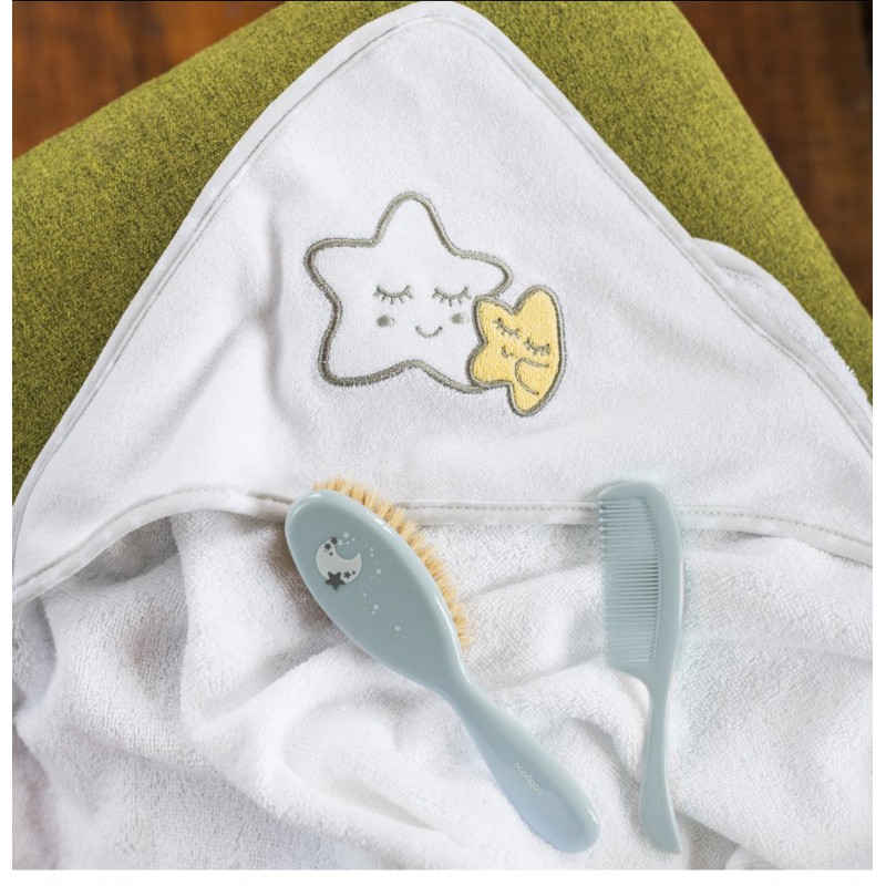 Miękka szczotka do włosów z delikatnym naturalnym włosiem przeznaczona jest do pielęgnacji niemowląt. Doskonale masuje skórę dziecka i dzięki swoim właściwościom antystatycznym nie elektryzuje włosów. Dołączony do zestawu grzebień ma zaokrąglone ząbki, dzięki czemu skóra dziecka nie zostaje podrażniona.