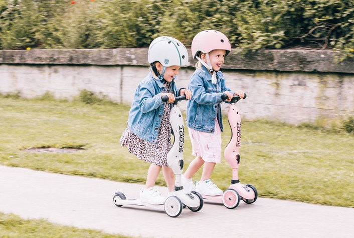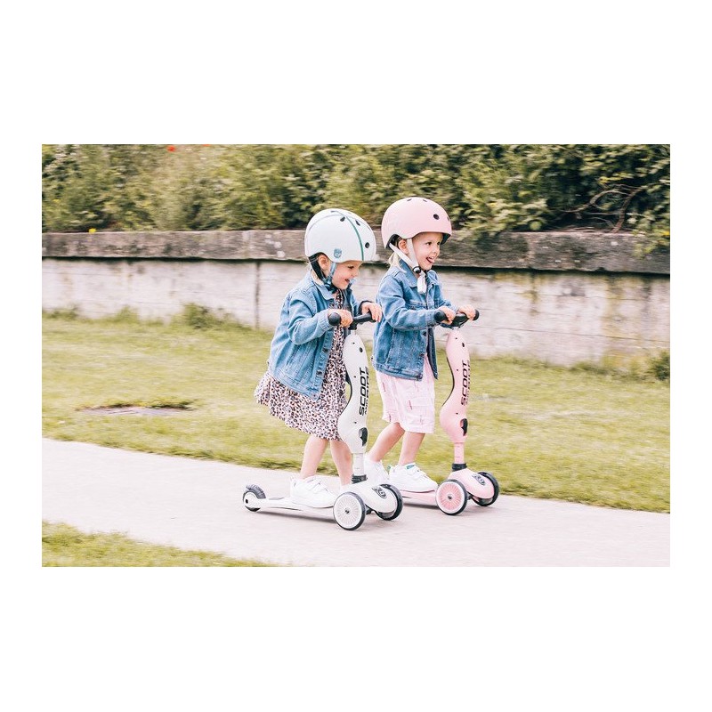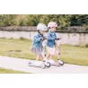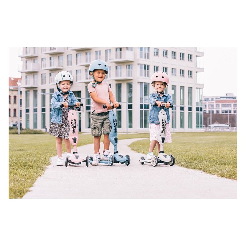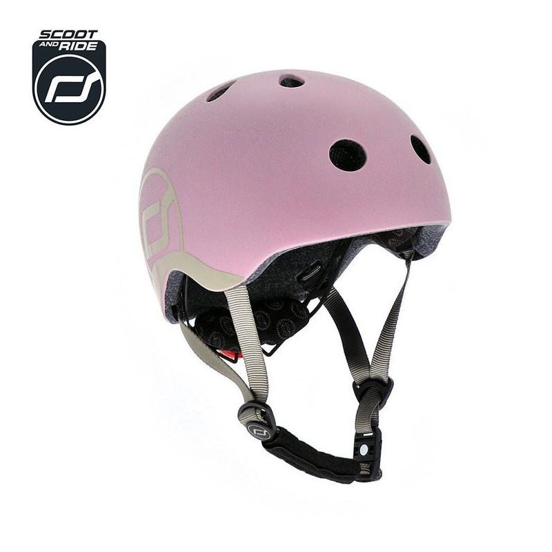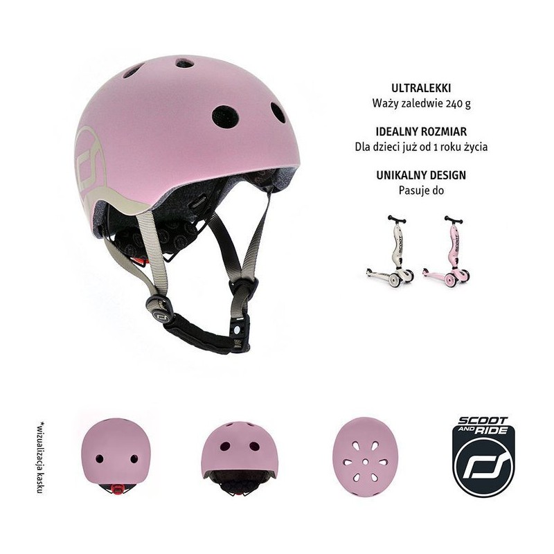 Ultralekki dziecięcy kask ochronny SCOOTANDRIDE dedykowany dzieciom od 1 do 5 roku życia. Regulowany za pomocą pokrętła z tyłu, wyposażony w czerwoną lampkę LED z trzema trybami świecenia, oraz bezpieczne magnetycznie zapięcie pod szyją z polarowym podbródkiem zapewniającym dodatkową ochronę.